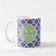 Caneca De Café Na moda Purple Quatrefoil e Nome Monograma Verde