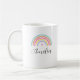 Este na moda Rainbow Love Heart Mug pode ser personalizado com seu próprio nome ou palavras personalizadas. Um design simples com cores pastel e letra de script de tendência. Um arco-íris representa alegria e felicidade, fazer é um tema de presente adorável para amigos e aniversários familiares, Dias de as mães, novos começos e muito mais!
