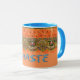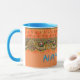 Linda caneca de café laranja e turquesa Namaste com um deslumbrante design indiano.