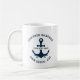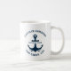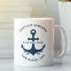 El diseño de Taza de Cafe con la Frase "Welcome Aboard" presenta un diseño sencillo y elegante de estilo costero blanco y azul marino con Logotipo de ancla. Personalice el texto del personalizado con el nombre de su barco junto con su ubicación, ciudad y estado. Regalo Ideal para propietarios de botes con temática náutica. No lo piense y Adquiera este Lindo diseño de Taza Nautica