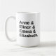 Uma caneca de café no estilo Helvetica com seus namoradas de livros da Jane Austen favoritos!