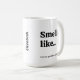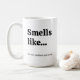 Uma xícara de café personalizada mostra o ditado: "Cheira como...não é mais meu problema." na frente e atrás e seu nome no lado. Excelente para você ou dar como presente.