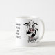 Esta caneca tem uma vaca dos desenhos animados em um lado e um touro no outro. Eu tenho cartões de aniversário com vaca ou o touro de harmonização.