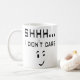 Uma caneca com uma citação engraçada "Shhh... Não me importo com sorriso e piscar os olhos emoji. Esta é a melhor caneca para você. Você pode usar esta caneca para beber café, chá, suco, leite etc e pode dar esta caneca para seus melhores amigos, colega de trabalho, chefe, parceiro etc
