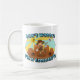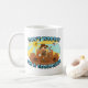 Esta engraçada caneca de geologia retrata um geólogo de desenho animado no estilo de desenho animado dos anos 1930-1940. Feliz Sr. Sun está brilhando no deserto com uma pequena nuvem feliz e algumas pedras alegres olhando para cima, enquanto um geólogo feliz, sortudo, sai para o campo com seu martelo de rocha e lentes de mão! O texto azul na caneca diz "Não se preocupe! Sou geólogo!" Avise as pessoas que estão em boas mãos quando você estiver por perto!