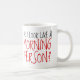 Advirta outro apenas quanto você não gosta de manhãs com este design de texto preto e vermelho: Eu olho como uma pessoa da manhã?