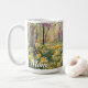 Esta caneca de café apresenta uma aquarela digital de narcisos floridos na primavera em um ambiente naturalizado com flores de árvore redbud. A frase "Mamãe" é sutilmente colocada no lado inferior direito. Personalize este modelo para adicionar seu toque pessoal. Esta encantadora caneca com tema de primavera é um presente atencioso e um lindo complemento para a decoração de qualquer casa.