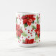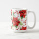 Esta clássica caneca de Natal apresenta um padrão de poinsetos de Natal vermelhos e verdes.