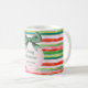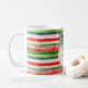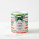 Listras verdes e vermelhas divertidas com caneca de café de fita. Um presente personalizado perfeito para o Natal.