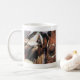A caneca é de excelente qualidade, de bom peso e aparenta resistentência. O tamanho grande da caneca de 444 ml é muito prático, ela serve até para sobremesas. A alça é do tamanho certo para empunhadura, e oferece grande firmeza. A impressão ficou perfeita, a imagem ficou completamente nítida, e as cores vivas como na imagem do site.