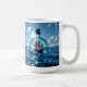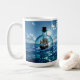 Uma caneca de café com tema oceânico. Um navio numa garrafa flutuando no mar. Um espetáculo de ai impressionante para aqueles que amam um tema náutico.