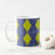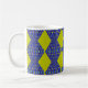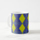 featuring inticate blue hourglass motif against diamonds. A striking pattern that evokes rhythm, ritual, and modern mistique