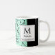 Caneca de café com MONOGRAMA moderna e elegante que seria um presente ideal para damas de honra, Dia das Mães, aniversários, Natal e durante todo o ano. O design apresenta um padrão FLORAL PRETO contra um fundo VERDE MENTA NEON com painel PRETO. No centro, há uma grande MONOGRAMA e nome personalizável, com texto personalizável abaixo que diz PRECIOSO PARA DEUS, que são todos PERSONALIZÁVEIS, então basta adicionar seu nome e texto conforme necessário, por exemplo, OBRIGADO. Adequada para qualquer ocasião ou propósito. Itens correspondentes disponíveis, para que você possa criar alguns conjuntos de presentes encantadores para Casamentos, Natal, Aniversários, Dia das Mães, etc.