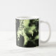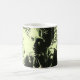 Artistic mug with a grayscale female portrait illuminated by bright yellow-green neon light, symbolizing creativity, boldness, and modern style