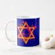 Estrela de David em laranja neon e rosa-quente com flores de hibisco, pássaros de amor e borboleta.