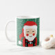 Este é um de meu design favorito, assim que eu decidi oferecê-lo em canecas de café. Eu rotulei o texto "Feliz Natal" no vermelho, e o Papai Noel popular bonito na tempestade de neve seu adorável! Faz um presente maravilhoso, ou um deleite para o senhor mesmo!