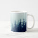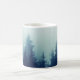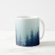 Caneca De Café Névoa negra em pinheiros em encostas montanhosas.