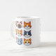 Nove rostos de gatos dispostos horizontalmente, três em cada fila. Estes rostos bonitos e diferentes de gatos de diferentes raças estão no estilo de desenhos coloridos para crianças. O fundo é branco. Comece seu dia com um sorriso com essas canecas adoráveis de café que vão iluminar sua rotina matinal! De designs esquisitas a padrões na moda, essas canecas certamente adicionam um toque de diversão ao seu tempo de café. Qual é o seu favorito? ☕️ ✨