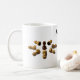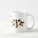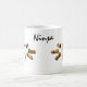 Um peão de xadrez marrom cercado por sete peões brancos-amarelados. Vitória Ninja sobre inimigos. Uma caneca de café engraçada. Duas imagens no lado externo e interno. Você pode alterar ou excluir as imagens e o texto Ninja.