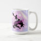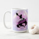Caneca de café humorística da Disco Bachelorette projetada para a equipe da noiva. Em belas cores gradientes de lavanda a pervinca e rosa com uma bola de discoteca funky, silhueta de cowboy domando um bronco, fonte retrô glamorosa "Noiva 'em Cowboy" (o equivalente country de 'coloque um anel nisso') e fundo de luzes de discoteca. Procure ID928 para ver outros produtos desta coleção da moda.