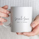 Diga obrigado à sua Dama de Honra com esta caneca de monograma com nome personalizado. Um presente elegante e moderno, esta caneca apresenta tipografia preta em script sobre um fundo branco limpo. Uma maneira única de mostrar sua gratidão por fazer parte do seu dia especial.