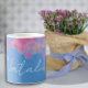 Caneca De Café Nome azul-floral de aquarela