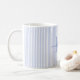 Comece a sua manhã com estilo com esta caneca de café listrada azul personalizada, projetada para trazer charme atemporal a cada gole. Com um fundo listrado suave azul e branco, esta caneca elegante é personalizada com a inicial do seu monograma e nome completo em uma fonte de letra cursiva graciosa, criando um visual feminino e refinado que se sente clássico e moderno.