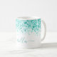 Caneca De Café Nome da turquesa verde-marinha com brilho branco