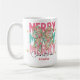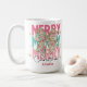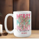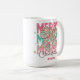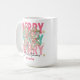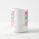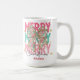 Adicione uma pop de estilo de feriado alegre às suas manhãs com esta caneca personalizada de "Feliz Natal" com um arco floral festivo. O vibrante design cor-de-rosa e verde é acentuado com toques dourados e letras ousadas de "FELIZ", fazer-o como um presente divertido e na moda sazonal. Personalize com um nome para um agradável presente de Natal para a família, amigos, professores ou colegas de trabalho. Perfeito para gostar de café, chá ou cacau quente a toda a estação.