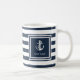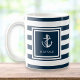 Caneca De Café Nome do Barco Faixa Azul Marinho Âncora Náutica