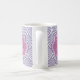 Uma caneca de padrão de escala arquitetada deco roxo de tendências com um crachá quatrefoil orquídeo que você pode personalizar adicionando facilmente seu próprio monograma e nome. Esta é parte da Coleção de Primaveras Monograma de Orquídeas de Primavera de Ultra Violet Scallops.