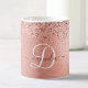 Personalize facilmente este design de caneca de café em moda motriz com brilho bonito de ouro rosa em um fundo metálico escovado de rosa dourado.
