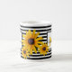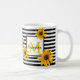 Aproveite seu café de chá com essa flor amarela e feliz de Susan olhos negros em um fundo listrado preto personalizado com sua inicial e seu nome. Você também pode deixar o texto para que seu vazio de nome tenha apenas o inicial. Moderno, clássico e chique. Envie-me um e-mail se quiser personalizar o produto ainda mais ou se quiser transferir para outro produto. Foto tirada no meu jardim. designsbykatz@gmail.com