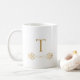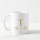 Crie uma caneca de presente monograma única e elegante com o meu design de tom de ouro desenhado à mão. Personalize esta caneca com um nome inicial para uma simples caneca de café de manutenção significativa. Personalize esta xícara de café com outras cores, se desejar. Excelente para os feriados. Preencham-se de doces ou cacau ou biscoitos para um presente de Natal barato e bonito. Vermelho e ouro dois pratos de tonalidade frente e trás.