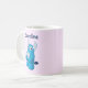 Crianças bonitinhas e assustadoras personalizaram a caneca com um demônio de desenho azul com o crânio de kawaii e um olhar louco em rosa e azul pastel.