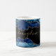 Caneca De Café Nome do Script de Agate Dourado Azul Elegante