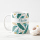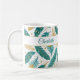 Caneca De Café Nome do Script de Penas Douradas e Teais Boho