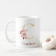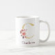 Caneca De Café Nome em Borgonha e Monograma Floral Rosa Letra C
