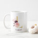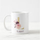 Caneca De Café Nome em Borgonha e Monograma Floral Rosa Letra L