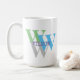 NOME INICIAL DO MONOGRAMA EM CINZA AZUL VERDE E xícara de caneca BRANCA Fácil de ser personalizado. nome estilo pessoal de fonte, tamanho e cores podem ser alterados. Itens correspondentes disponíveis.