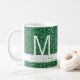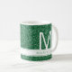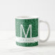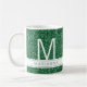 Personalize uma caneca verde com seu monograma personalizado ou inicial e nome ou texto. Os brilhos verdes de Natal são uma imagem impressa e o monograma é super moderno, mínimo, chique e elegante. — Altere fontes e faixas ou cores de texto clicando em PERSONALIZAR.