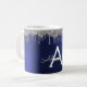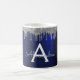 Caneca De Café Nome Monograma Brilho Azul Marinho Prata