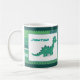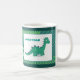 Caneca de Dinossauro feliz com o nome das crianças. Dino verde/azul/menta