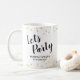 Esta elegante, mas brincalhona caneca de festa de aniversário apresenta a tipografia do script do "Partido do Vamos" em preto emoldurada por um foil dourado confetti. Basta adicionar seu nome e texto personalizados. (Nota: O aspecto dourado do confete é obtido com uma imagem impressa e não é tinta ou folha metálica.)