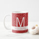 Personalize uma caneca vermelha brilhando com seu monograma personalizado ou inicial e nome ou texto. Os brilhos vermelhos do Natal ou do Dia de Vanentine são uma imagem impressa e o monograma é super moderno, mínimo, chique e elegante. — Altere fontes e faixas ou cores de texto clicando em PERSONALIZAR.