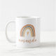 Esta caneca cerâmica apresenta uma aquarela terracotta arco-íris boêmia com coração e uma letra de escrita fofa. Mude facilmente o nome para as suas necessidades específicas. Isto faz o presente perfeito para qualquer pessoa divertida e caprichosa.
