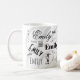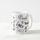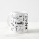 Uma caneca de tipografia de nome personalizado do nome Emily em uma variedade de estilos de tipo que sobrepõe a inicial em segundo plano. Cores simples de preto, branco e cinza contrastantes. O nome diz tudo. Ninguém pode tomar seu café por acaso.
