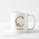 Caneca De Café Nome Personalizado Folha de Ouro Rosa Bege Rosas L