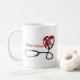 Apresentando nossa Enfermeira de Estetoscópio Vermelho Enfermeira Cardíaca Enfermeira Café Mug, o companheiro perfeito para os profissionais de saúde iniciarem seu dia com calor e energia. Esta caneca apresenta um coração vermelho vibrante interligado com um estetoscópio, simbolizando o cuidado e a compaixão da enfermagem. Com um padrão de batimento cardíaco ao redor do design, ele capta o pulso da profissão de saúde. Aproveite sua bebida favorita em estilo e mostre sua paixão por amamentar e dedicação ao tratamento paciente com esta maravilhosa caneca.