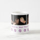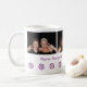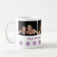 Uma linda, moderna e elegante caneca de café para Dia de as mães para sua mãe (ou para seu aniversário), com uma colagem de 3 fotos horizontais que você pode personalizar mostrando a mãe e a filha adolescente, uma fileira de flores roxas (agrupadas uma mais escura e uma mais leve), e um texto personalizável com um nome que você pode personalizar e as palavras "Melhor Mãe NUNCA" com um coração. Sinta-se à vontade para mudar isso para "Melhor Mamãe Nunca" ou o que você quiser.